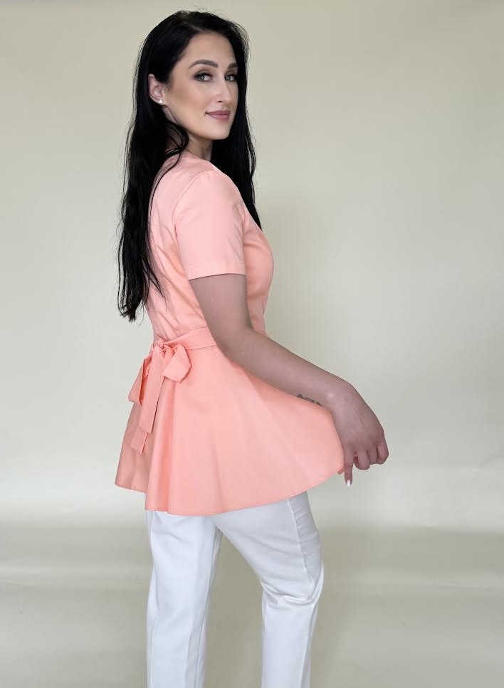 Nasz ubiór ma bardzo duży wpływ na nasze samopoczucie. W pracy można również wyglądać świetnie, podobać się sobie, a przy okazji zachować szyk i elegancję. Nasze fartuszki są wykonane z dbałością o każdy Detal, gdyż zadowolenie naszych klientek jest dla nas priorytetem. Fartuszki posiadają krój który podkreśli Twoją sylwetkę. Są w 100proc. produktem polskim. Zaprojektowaliśmy je z myślą o wygodzie, elegancji i ponadczasowości. Szyjemy wyłącznie z atestowanych tkanin, (OEKO-TEST) odpornych na wysokie temperatury prania (95st.). Skład to: 65% poliester i 35% bawełna. Dzięki temu są odporne na zagniecenia, łatwe w prasowaniu i utrzymaniu w czystości. Jeżeli chciałabyś mieć na fartuszku logo swojego salonu, to zapraszamy do kontaktu z naszym konsultantem. Fason z baskinką, bardzo kobiecy, przeznaczony do gabinetów kosmetycznych, spa i gabinetów masażu. Dostępny wybór kolorów.